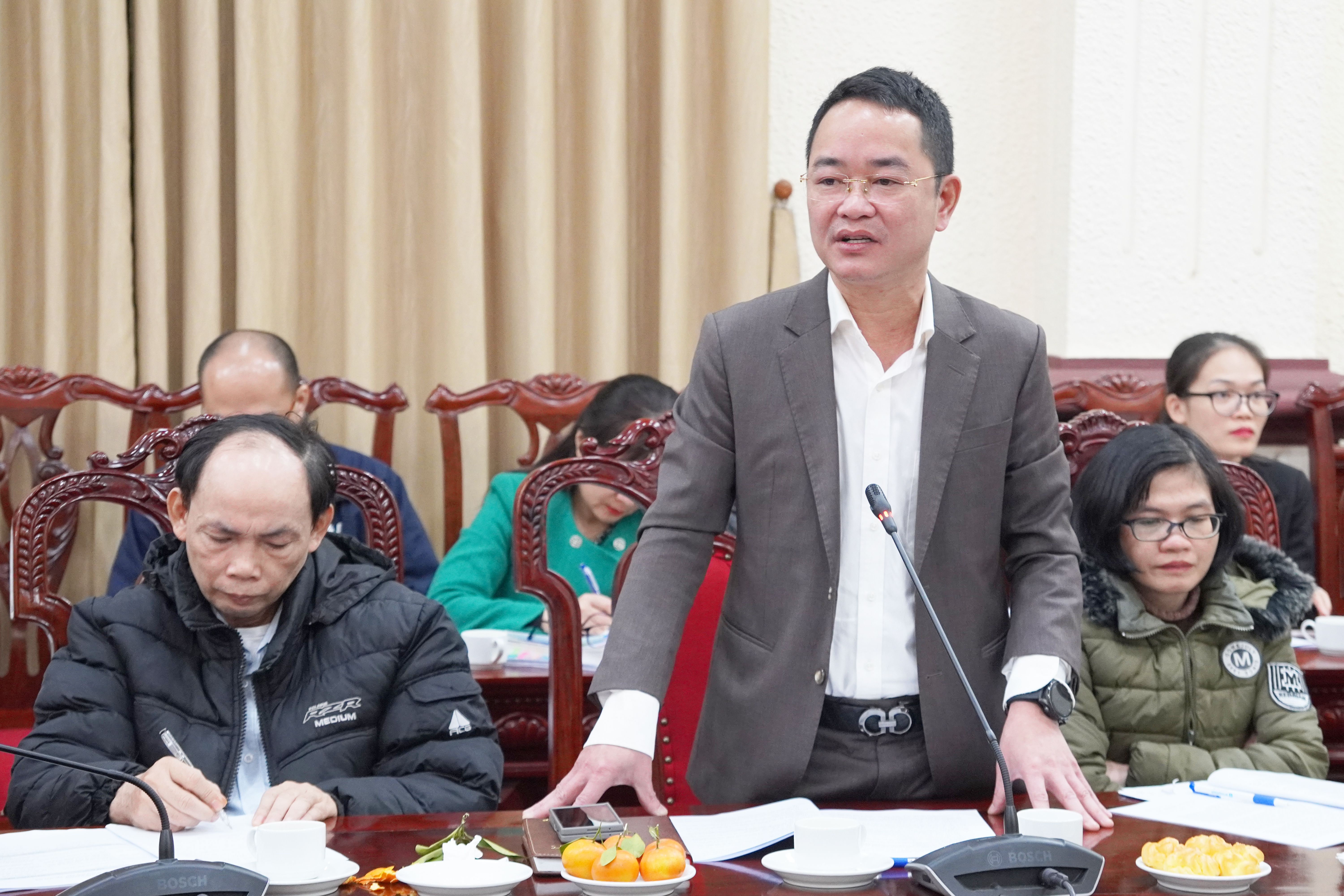 Đồng chí Trần Anh Đức, Vụ trưởng Vụ Các vấn đề chung về xây dựng pháp luật phát biểu tại Hội thảo