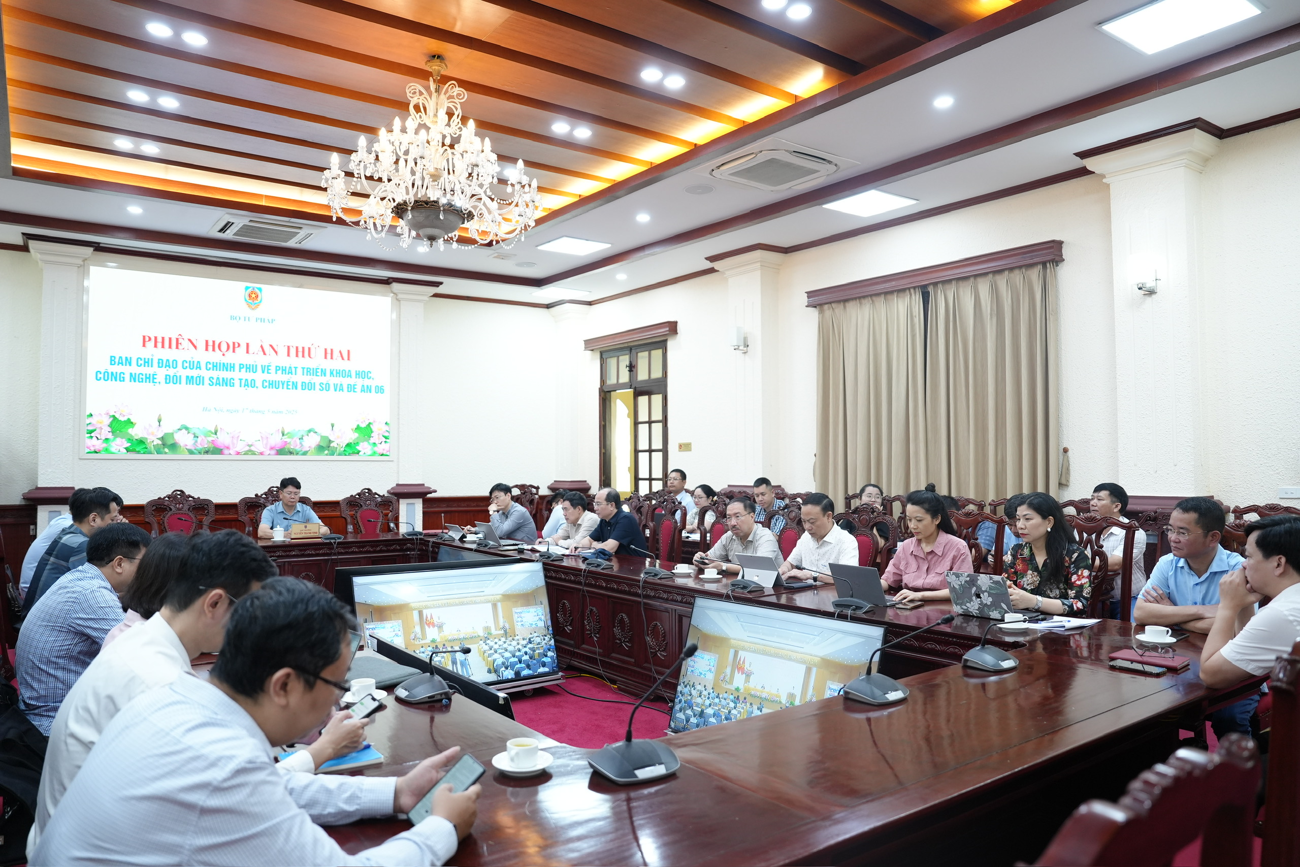 Tại điểm cầu Bộ Tư pháp có sự tham gia của các đồng chí: Thứ trưởng Nguyễn Thanh Tịnh; thành viên Ban chỉ đạo của Bộ Tư pháp về phát triển khoa học, công nghệ, đổi mới sáng tạo, chuyển đổi số và Đề án 06 cùng các đồng chí chuyên viên giúp việc thành viên Ban chỉ đạo của Bộ Tư pháp về phát triển khoa học, công nghệ, đổi mới sáng tạo, chuyển đổi số và Đề án 06.