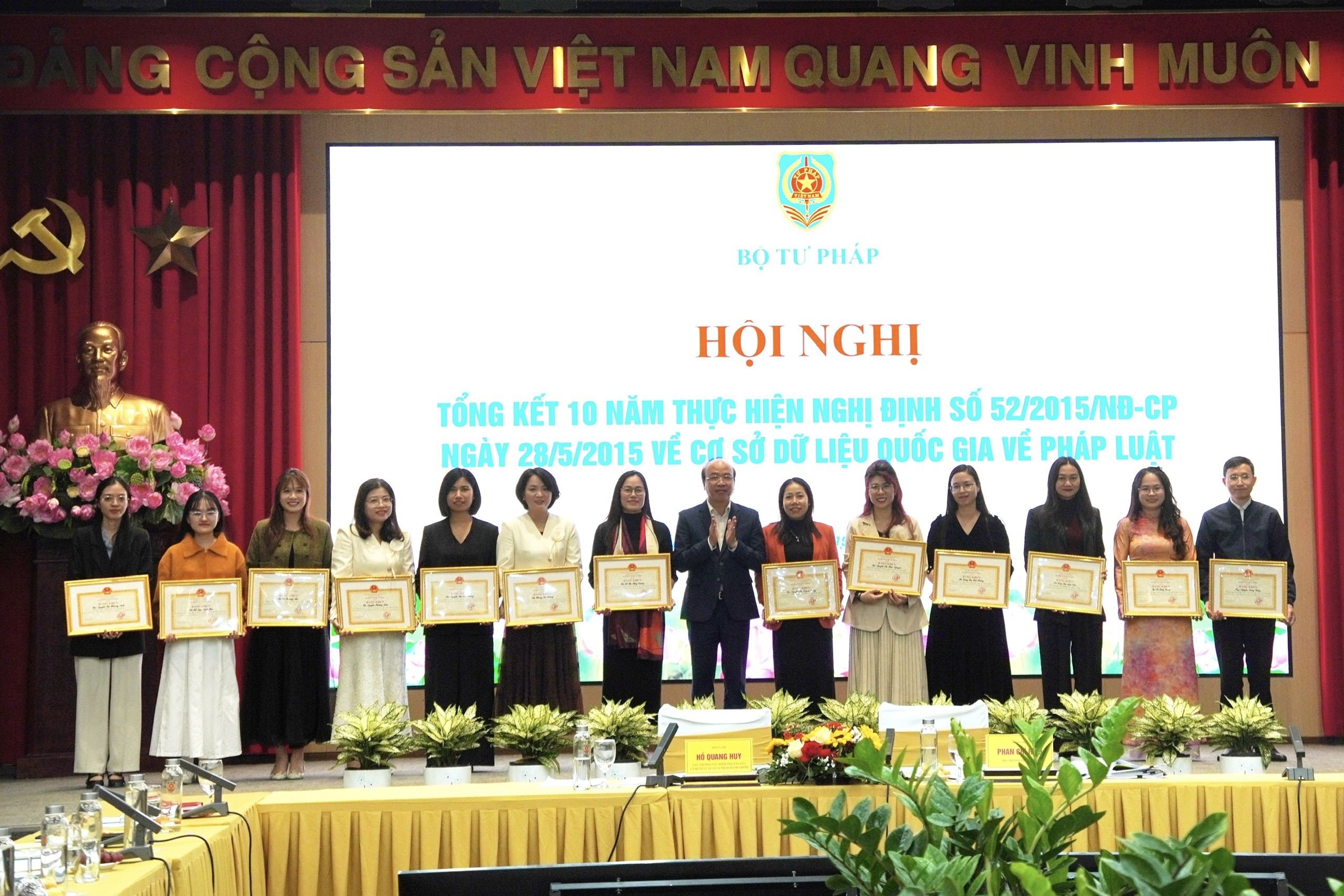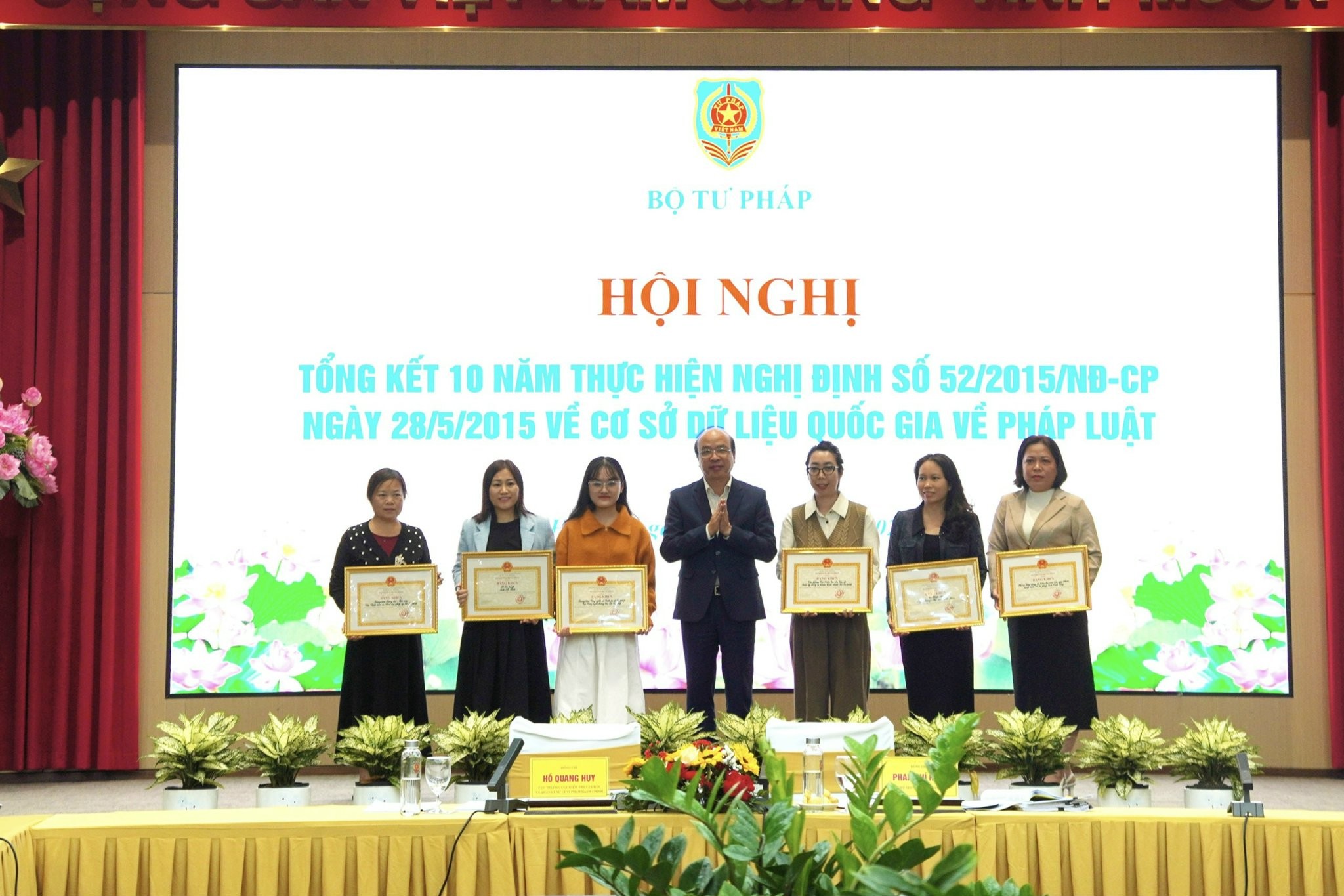 Nhân dịp này, Thứ trưởng Bộ Tư pháp Phan Chí Hiếu đã trao tặng bằng khen của Bộ trưởng Bộ Tư pháp cho 7 tập thể, 20 cá nhân có thành tích xuất sắc trong 10 năm triển khai Nghị định số 52/2015/NĐ-CP.